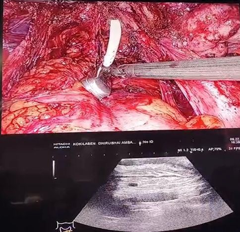 However, intraoperative assessment of bowel wall infiltration remains challenging, as visual inspection and palpation may underestimate lesion depth especially with less experienced surgeons (2). The choice between rectal shaving, disc excision, or segmental bowel resection is often based on preoperative imaging and intraoperative judgment. Inaccurate assessment may lead to incomplete excision or unnecessary radical bowel surgery, both of which can adversely affect patient outcomes (3). Intraoperative endorectal ultrasound (Endo-USG) provides real-time, high-resolution visualization of bowel wall layers, complementing visual assessment and improves accuracy of indepth evaluation (4). Integration of Endo-USG with robotic platforms using TilePro technology allows ultrasound images to be displayed simultaneously with the operative field on the surgeon’s console, enhancing precision and surgical confidence.This article describes a novel operative technique utilizing robotic-integrated intraoperative Endo-USG to guide real-time surgical decision-making in bowel endometriosis, illustrated through two clinical cases.